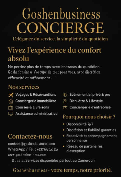 logistiques et vos services pratiques afin de vous faire gagner du temps et de vous offrir confort, rapidité et tranquillité d’esprit. Que ce soit pour vos voyages, vos courses, vos documents, vos événements ou vos services personnels, nous assurons une assistance disponible, professionnelle et adaptée à chaque demande. Contactez nous par e-mail: contact@goshenbusiness.com ou Contactez-nous maintenant par téléphone.
